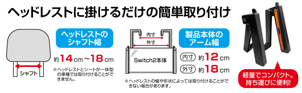 - ヘッドレストの幅や形状によっては取り付けることができない場合があります。